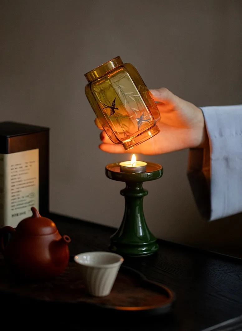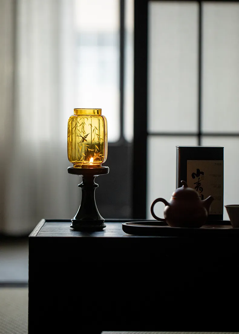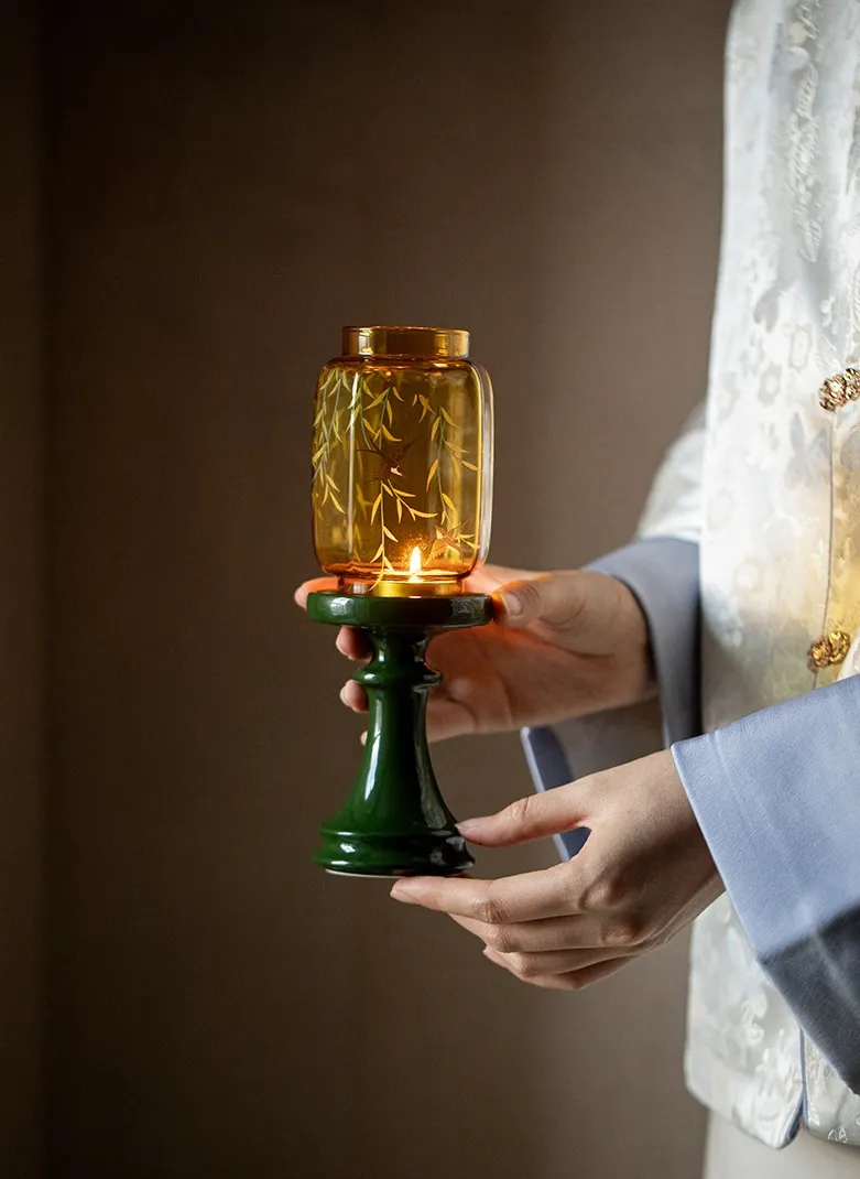 Bring an elegant touch of the Orient to your home with this Chinese Style Emerald Green Glass Candle Holder. Crafted from high-quality glass, it features a rich emerald green hue that reflects light beautifully, creating a warm and serene ambiance. Perfect for dining tables, living rooms, or meditation spaces, this candle holder blends traditional Chinese aesthetics with modern elegance.