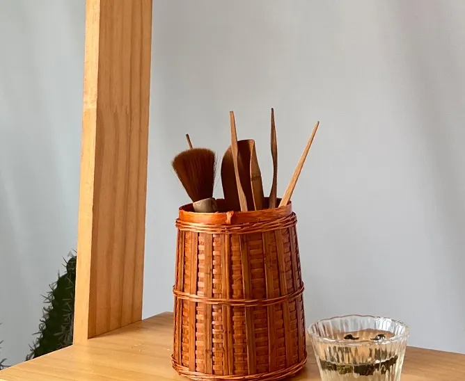 A minimalist bamboo pen holder handcrafted with care. Adds rustic charm to your workspace while keeping it tidy.