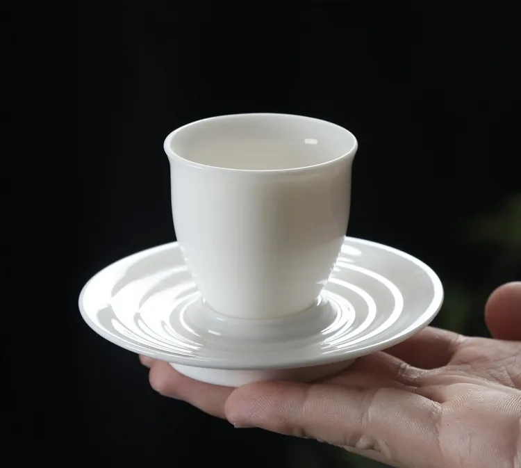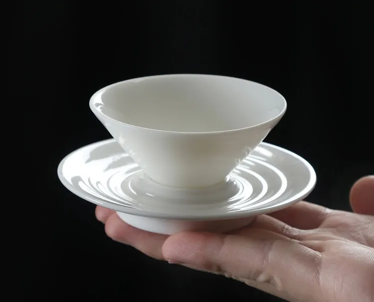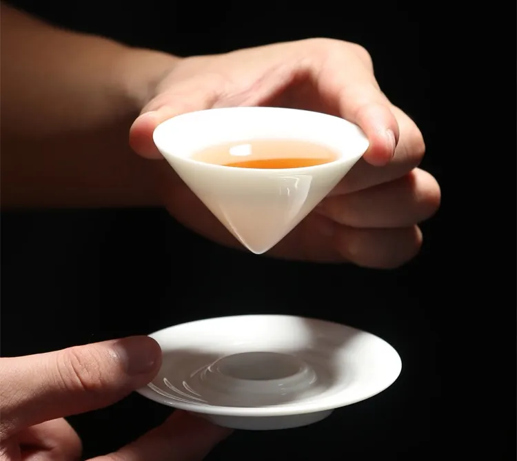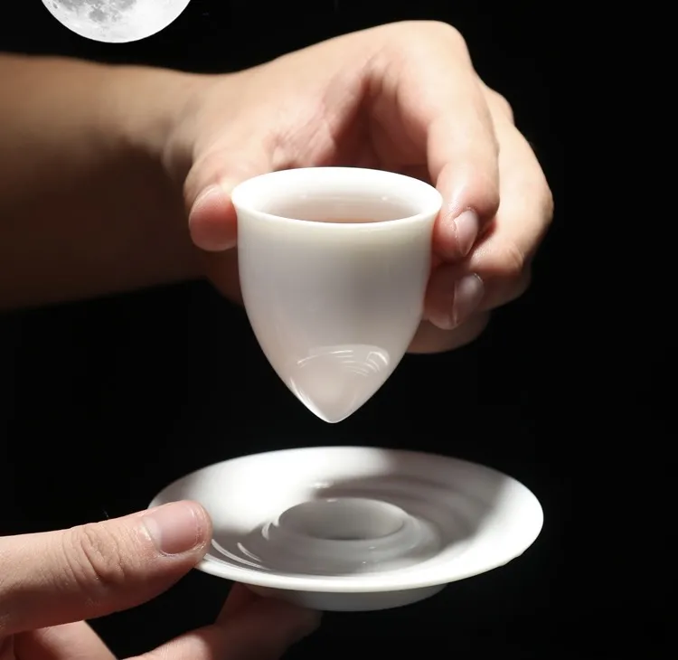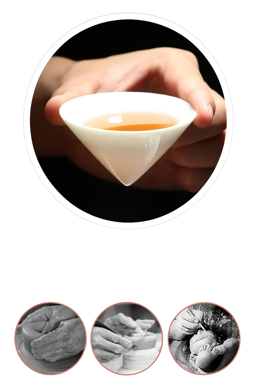 Elegant 40ml Mutton-Fat Jade Porcelain Tea Cup from Dehua, available in cone-shaped or waterdrop design. Perfect for Gongfu tea tasting, Chinese tea ceremony, or as a refined gift for special occasions.