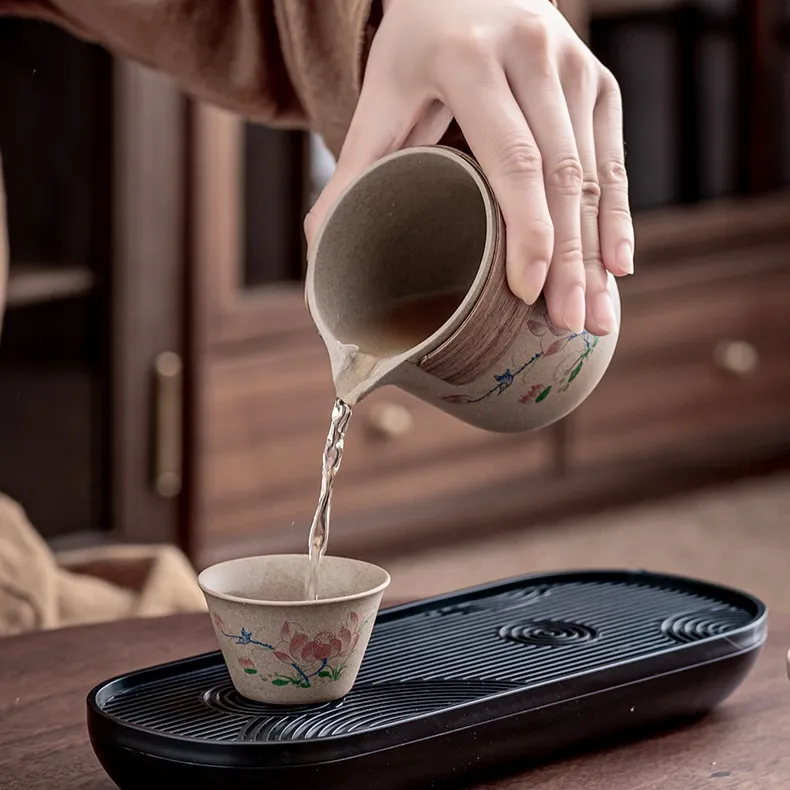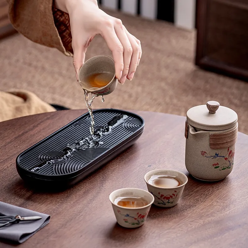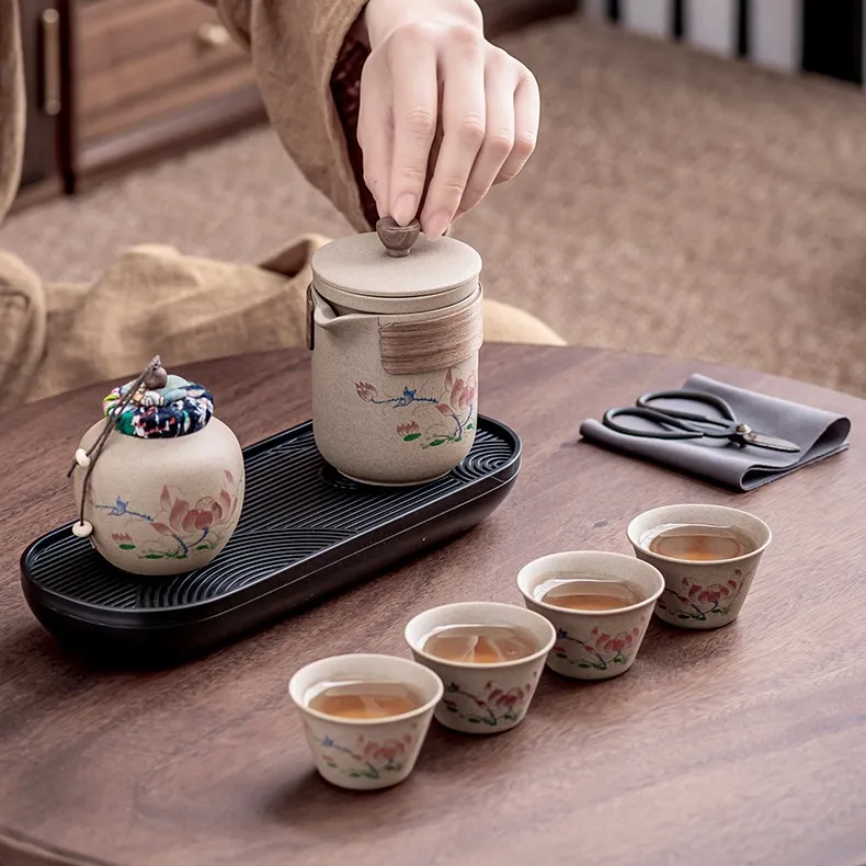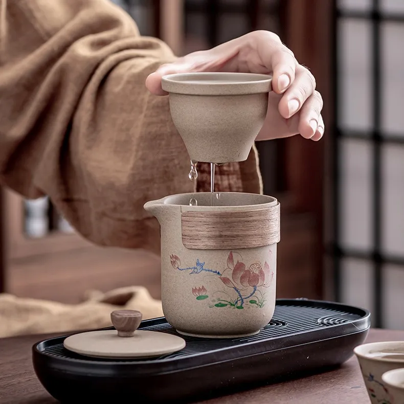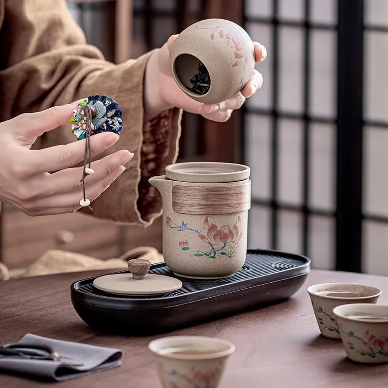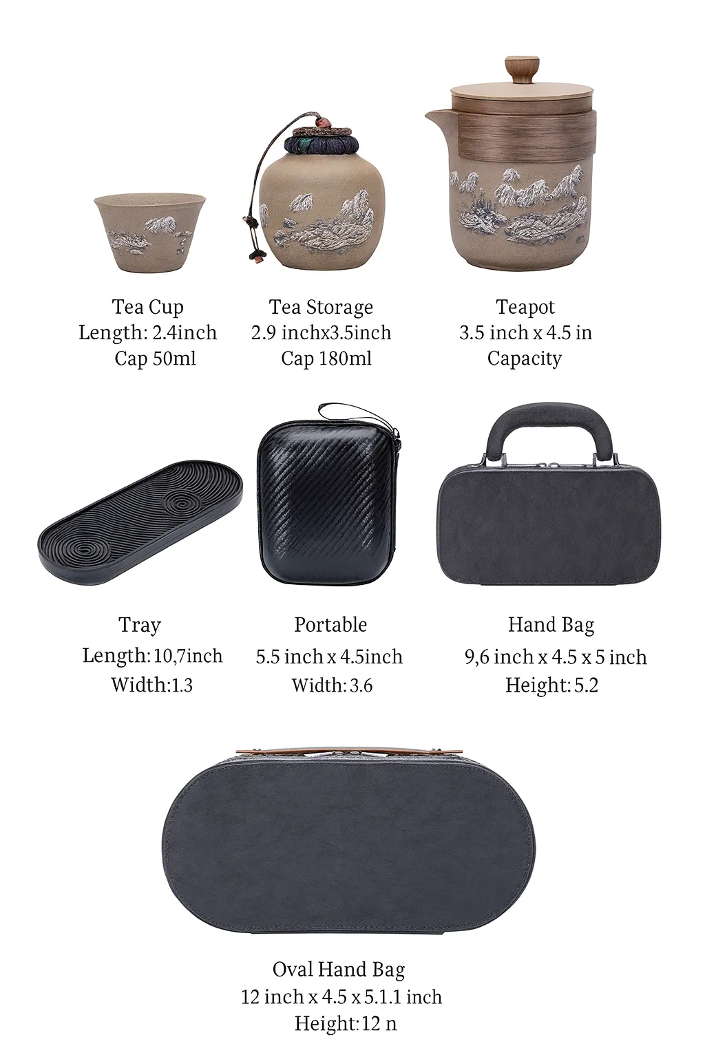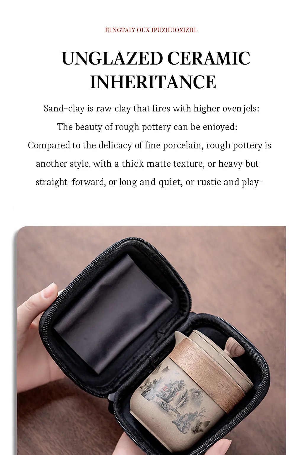 Experience the charm of traditional Chinese tea culture anywhere you go with this portable coarse pottery tea set. Designed for tea lovers who enjoy outdoor camping, travel, hiking, or simply relaxing at the office, this set combines rustic elegance with modern convenience.