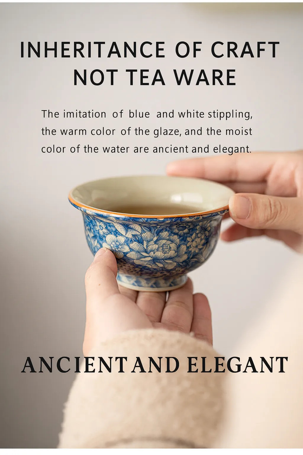 Made with high-quality Ru Kiln porcelain, this tea cup features a smooth glaze, delicate hand-painted details, and a refined texture that feels comfortable in the hand. Its design is not only practical for daily tea enjoyment but also a beautiful piece of art that embodies cultural heritage.