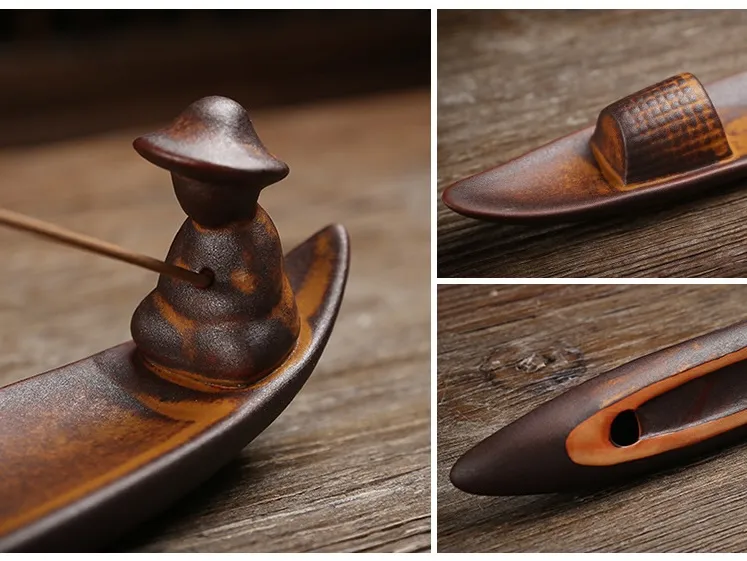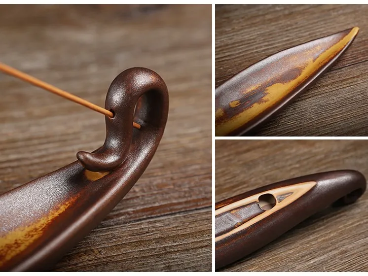 This incense holder is crafted for horizontal incense sticks, with an elongated channel that securely holds the stick and collects ash neatly. The design blends authentic Chinese aesthetics with functional elegance, making it an ideal addition to tea rooms, meditation spaces, or home décor with an Eastern touch.