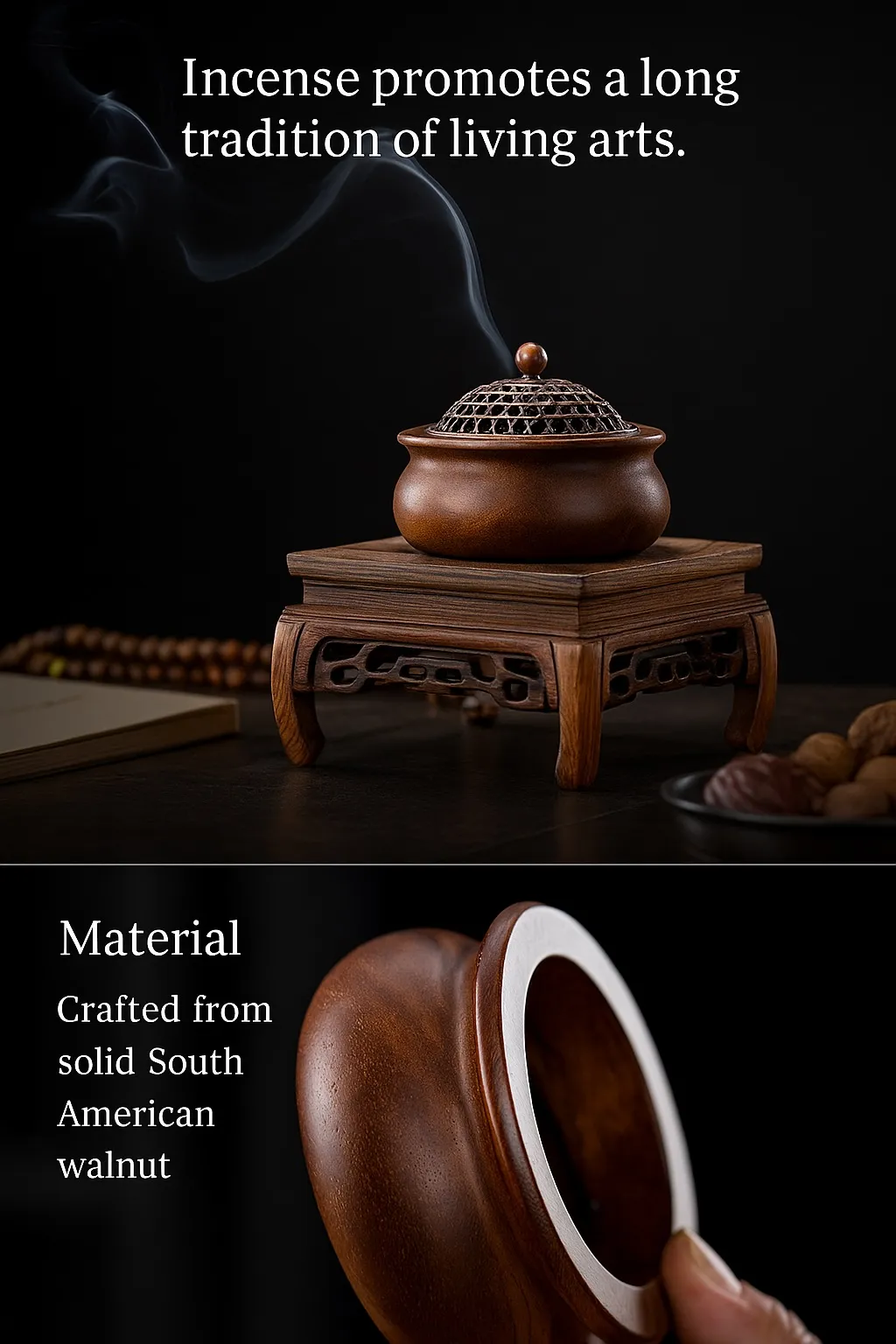 Made from premium walnut hardwood, this censer is not only a tool for aromatherapy but also a statement piece of natural beauty and cultural refinement. The smooth grain, warm tone, and refined craftsmanship speak to the calm and clarity of Chinese ritual traditions.